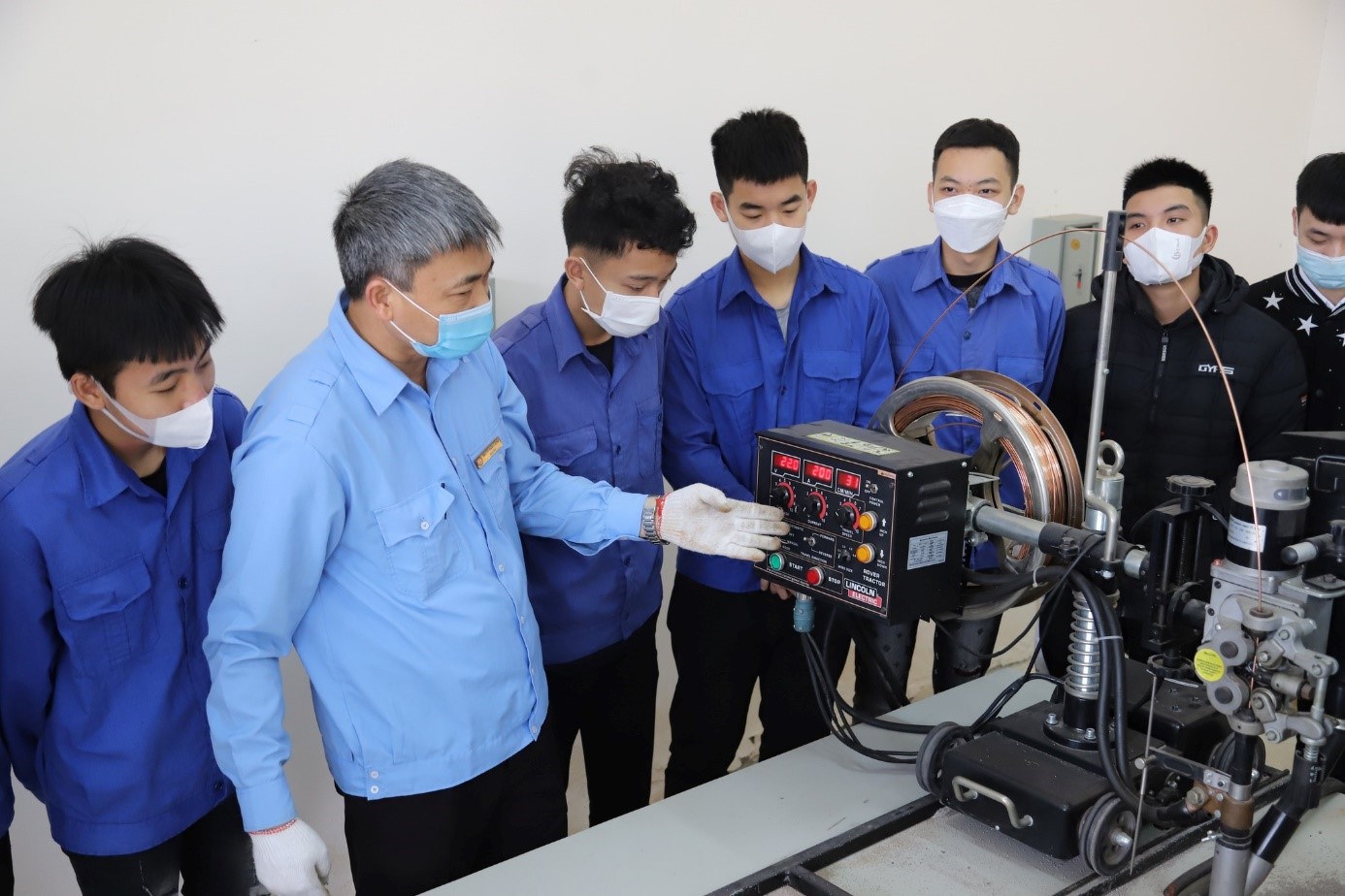 Học sinh, sinh viên nhà trường nghe giảng về nghề Hàn công nghệ cao