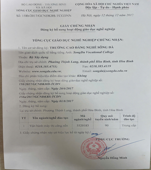 Giấy chứng nhận đăng ký bổ sung hoạt động GDNN Ngày đăng: 18-12-2025 Bài viết liên quan Giấy phép đăng ký hoạt động giáo dục nghề nghiệp Ngày đăng: 15:15 18/12/2025 Giấy phép đăng ký hoạt động giáo dục nghề nghiệp Ngày đăng: 15:13 18/12/2025 Quyết định thành lập trường Ngày đăng: 15:07 18/12/2025