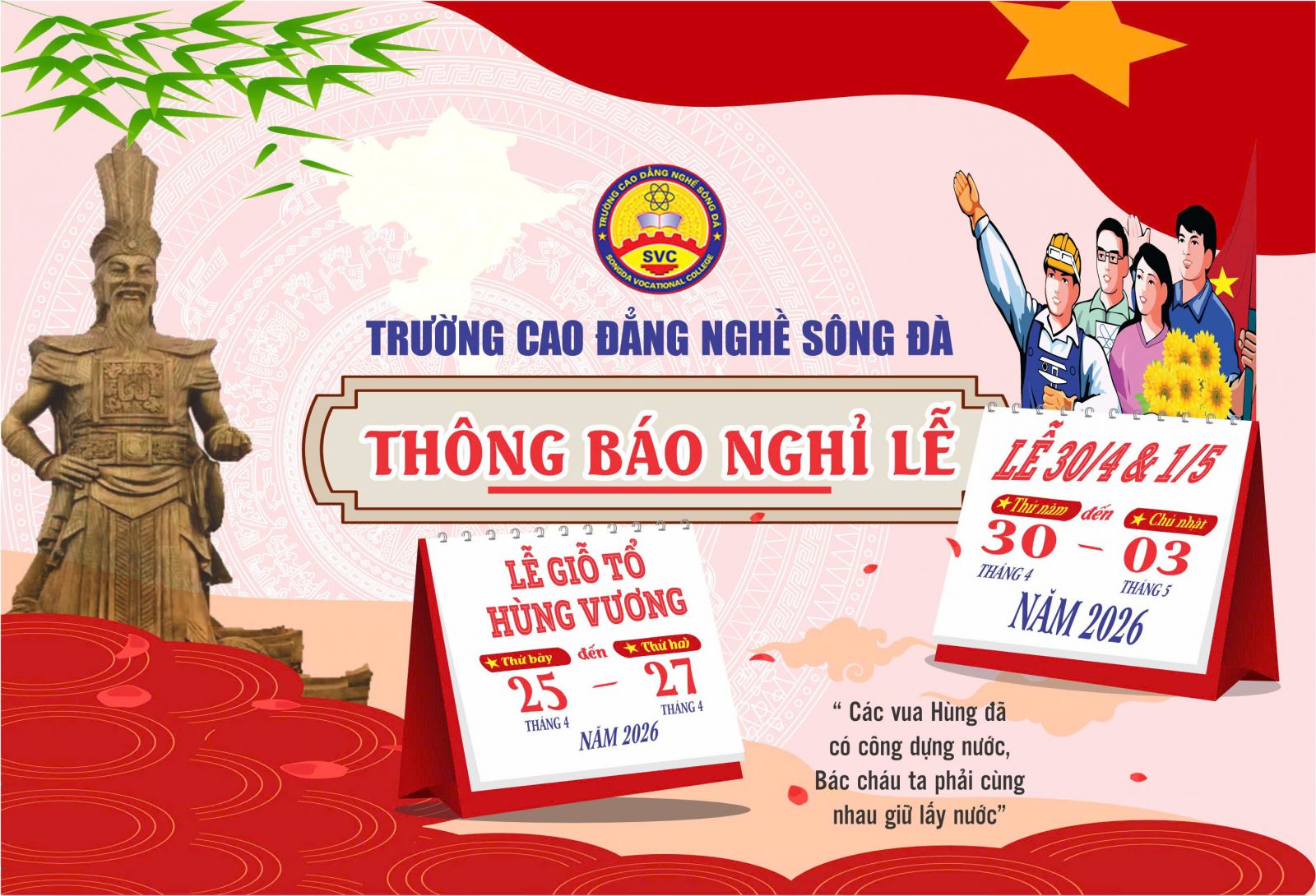 TRƯỜNG CAO ĐẲNG NGHỀ SÔNG ĐÀ TRÂN TRỌNG THÔNG BÁO NGHỈ LỄ – GIỖ TỔ HÙNG VƯƠNG, 30/4 VÀ 1/5