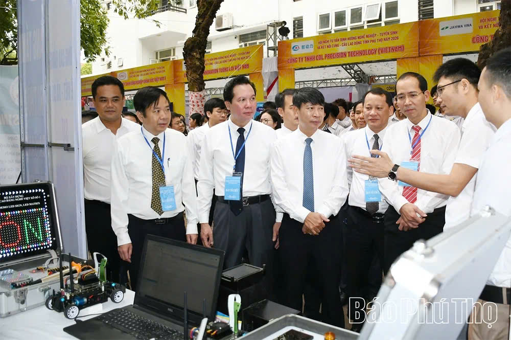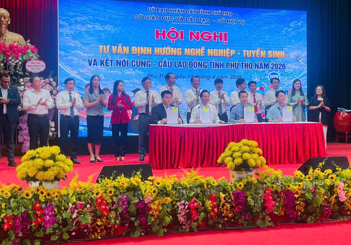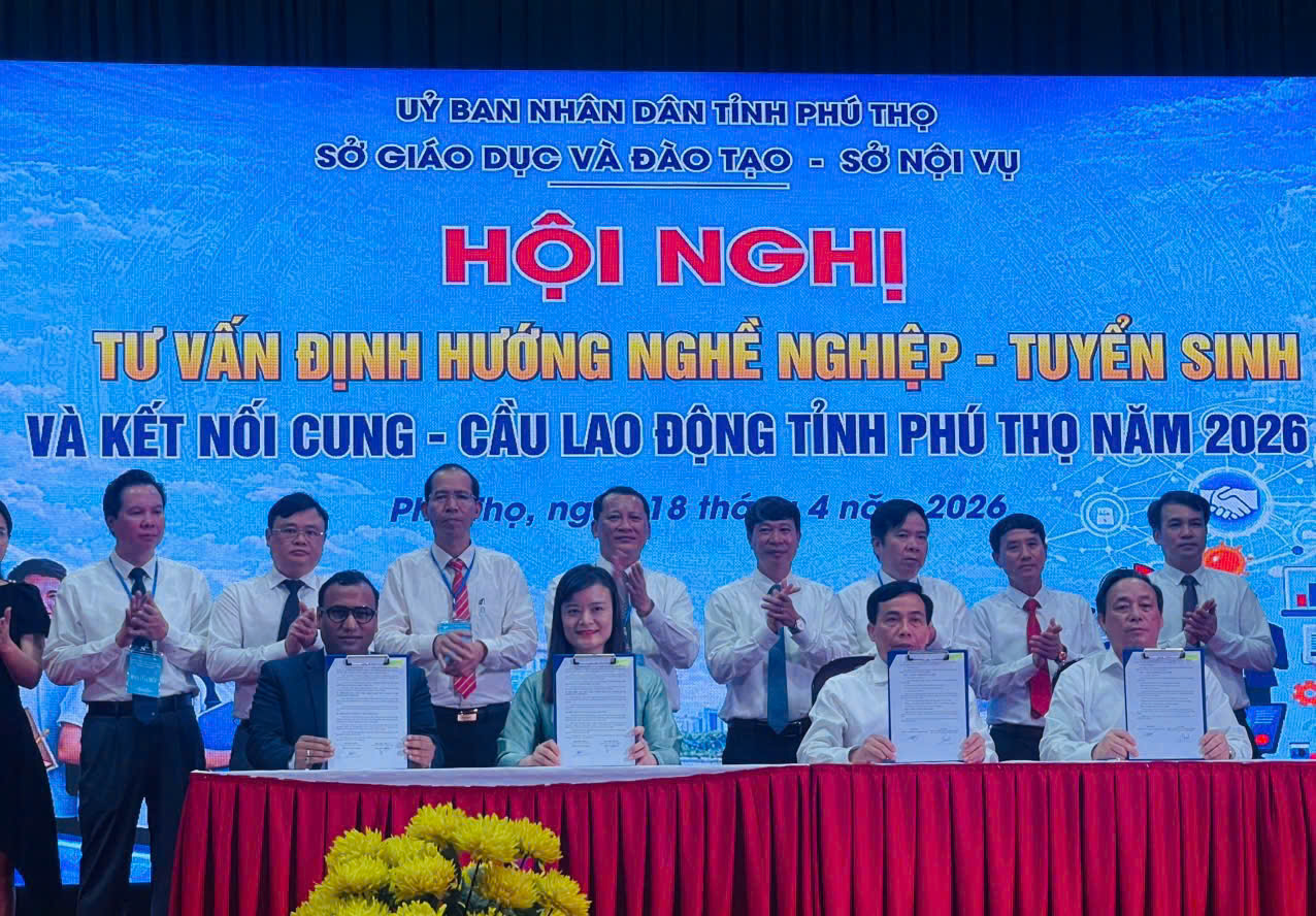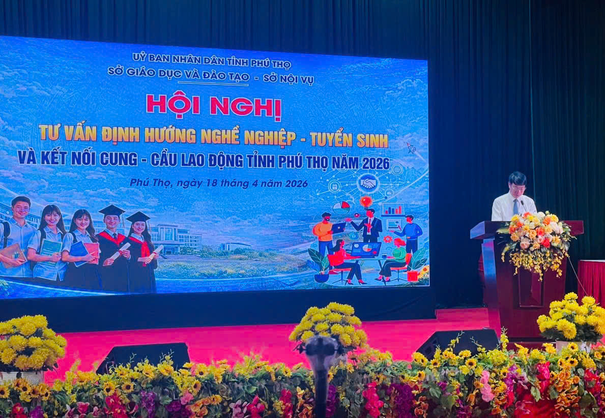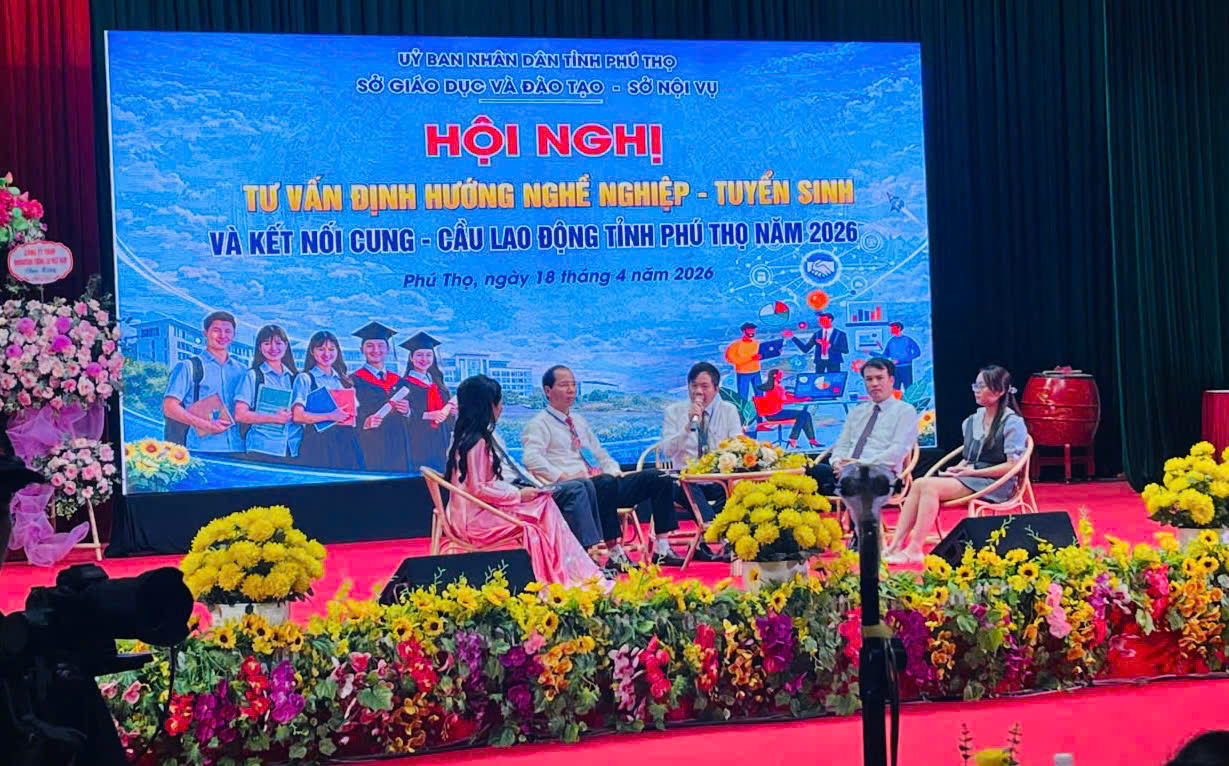 (Songda.edu.vn) – Ngày 18/4/2026, tại Trường Cao đẳng Kỹ thuật - Công nghệ Vĩnh Phúc, đoàn đại biểu Trường Cao đẳng nghề Sông Đà đã tham dự "Hội nghị tư vấn định hướng nghề nghiệp, tuyển sinh và kết nối cung - cầu lao động tỉnh Phú Thọ năm 2026". Chương trình do Sở Giáo dục và Đào tạo phối hợp với Sở Nội vụ tỉnh Phú Thọ tổ chức với quy mô hoành tráng và tính thực tiễn cao.